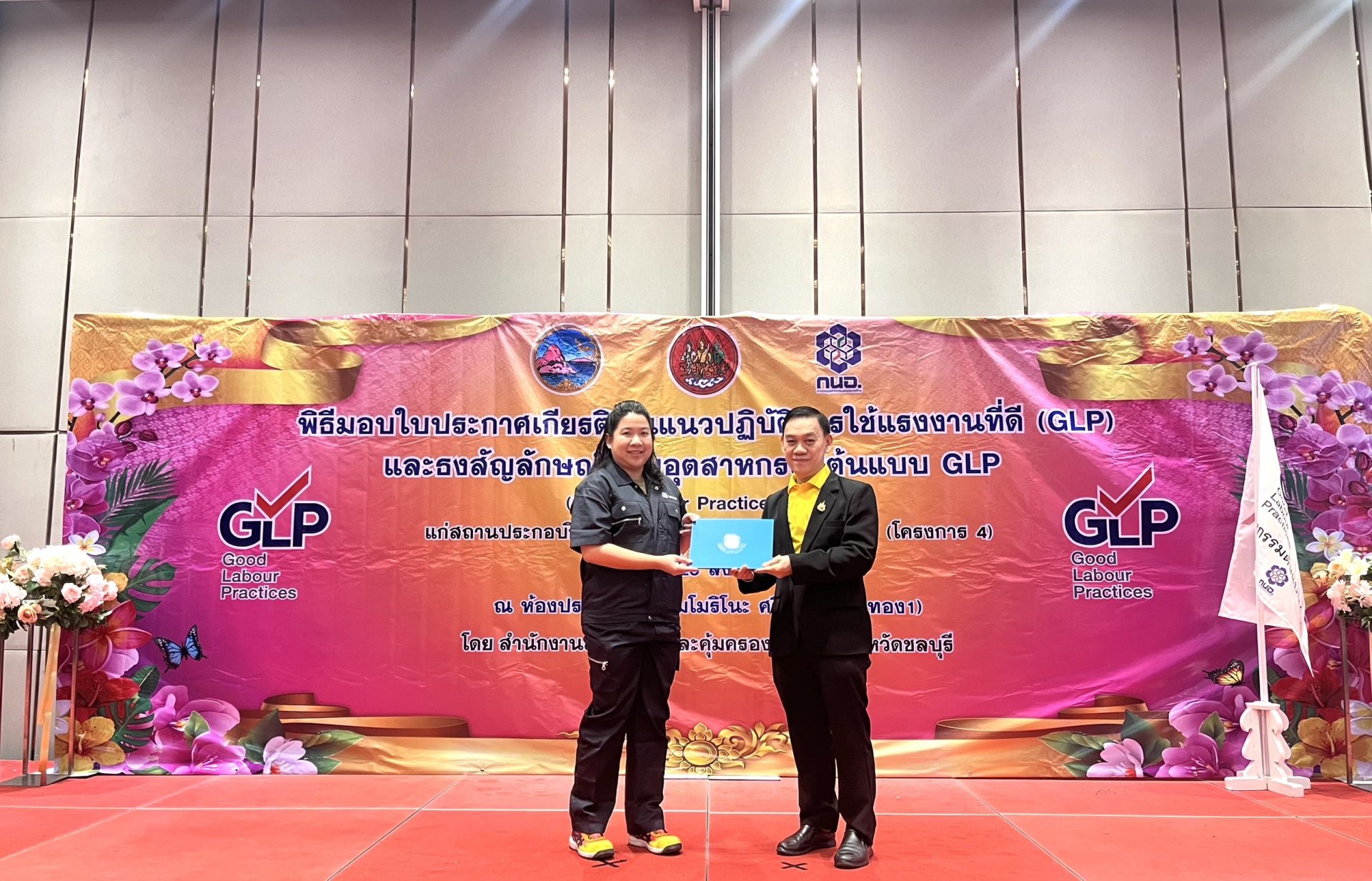 เมื่อวันที่ 25 สิงหาคม 2568 บริษัทฯ ได้เข้าร่วมพิธีรับมอบใบประกาศเกียรติคุณแนวปฏิบัติการใช้แรงงานที่ดี (Good Labour Practices : GLP) โดยสำนักงานสวัสดิการและคุ้มครองแรงงานจังหวัดชลบุรี ทางบริษัทฯ รู้สึกภาคภูมิใจและเป็นเกียรติอย่างยิ่งที่ได้รับการรับรองในครั้งนี้และจะมุ่งมั่นดำเนินงานภายใต้นโยบายการใช้แรงงานที่ดีต่อไป